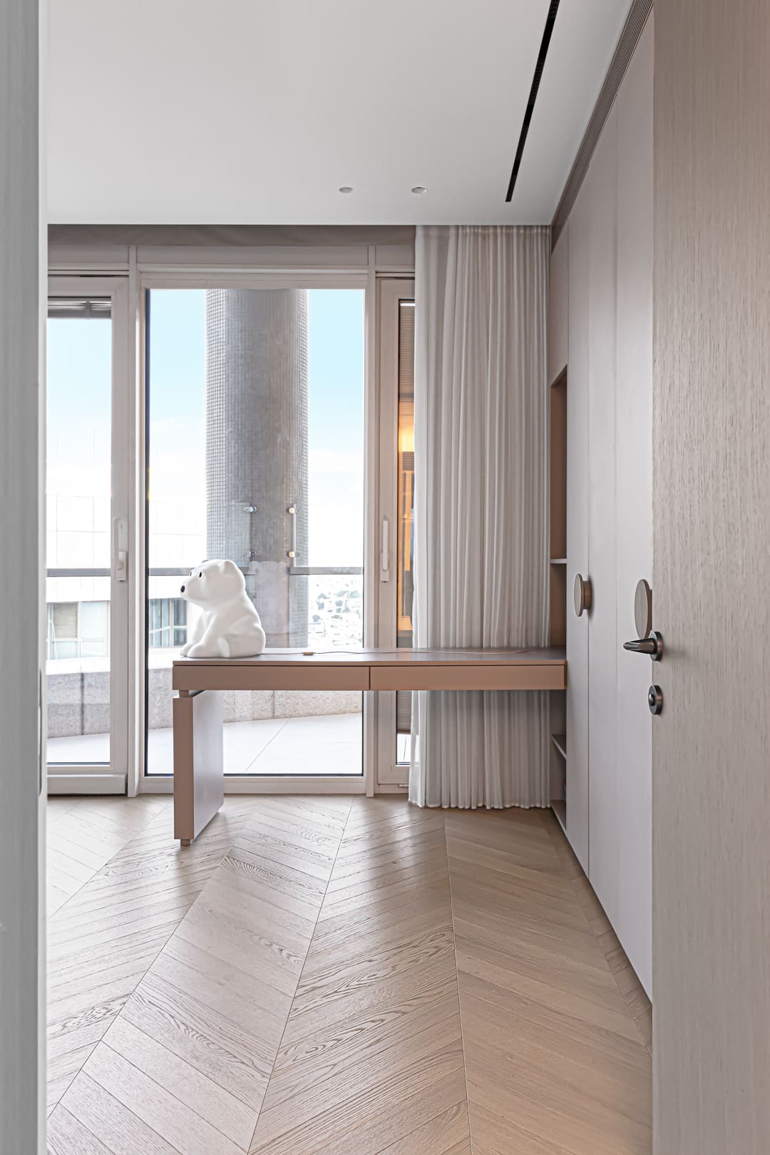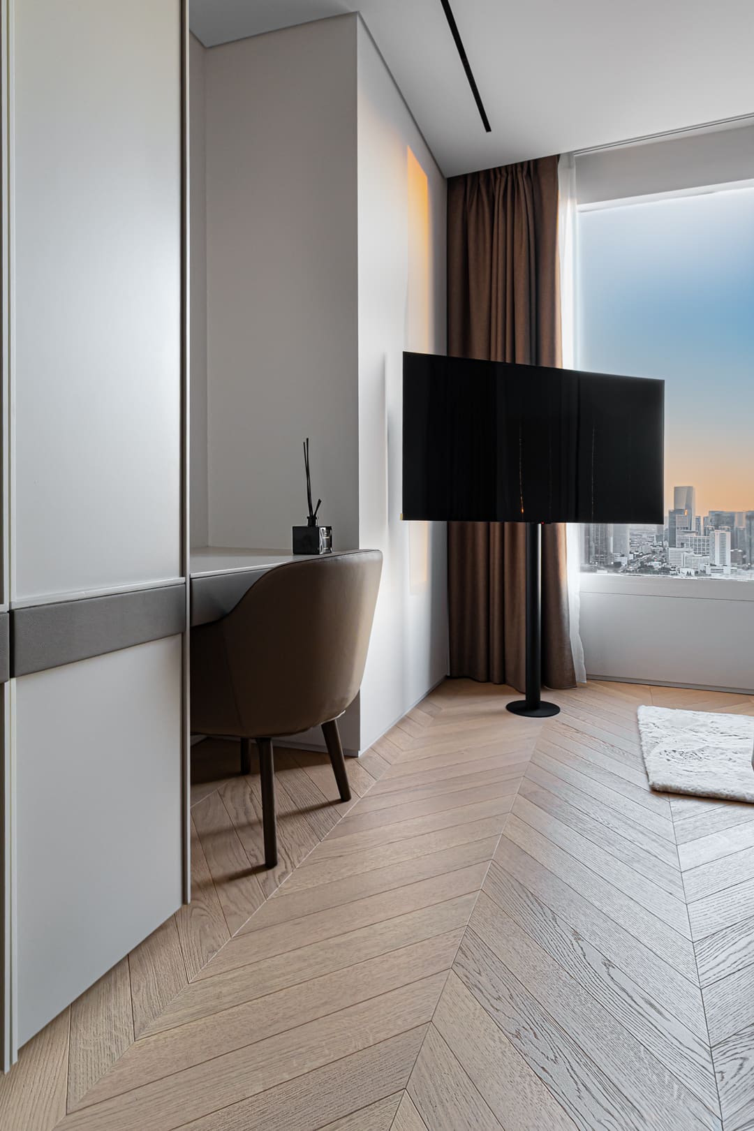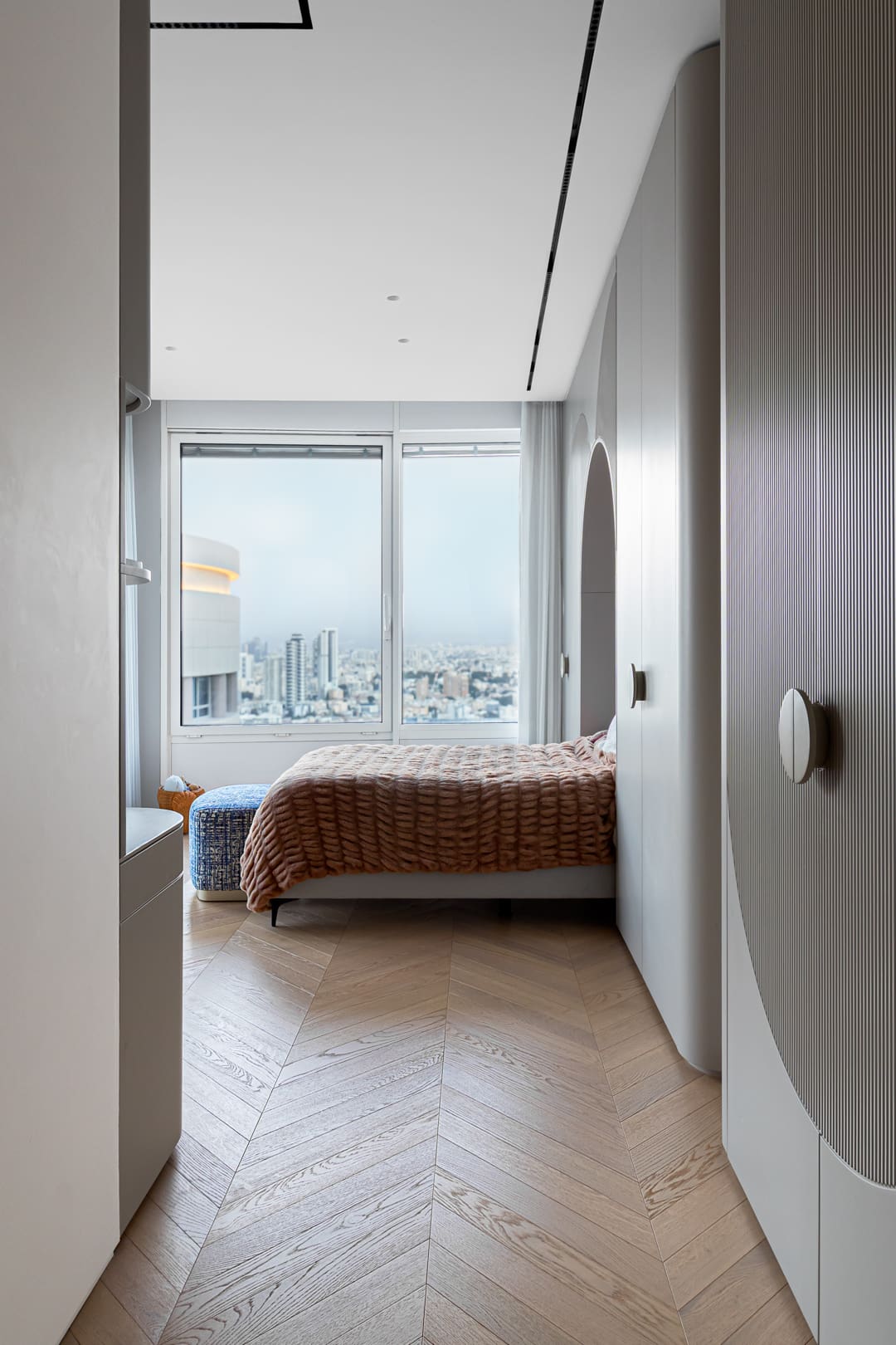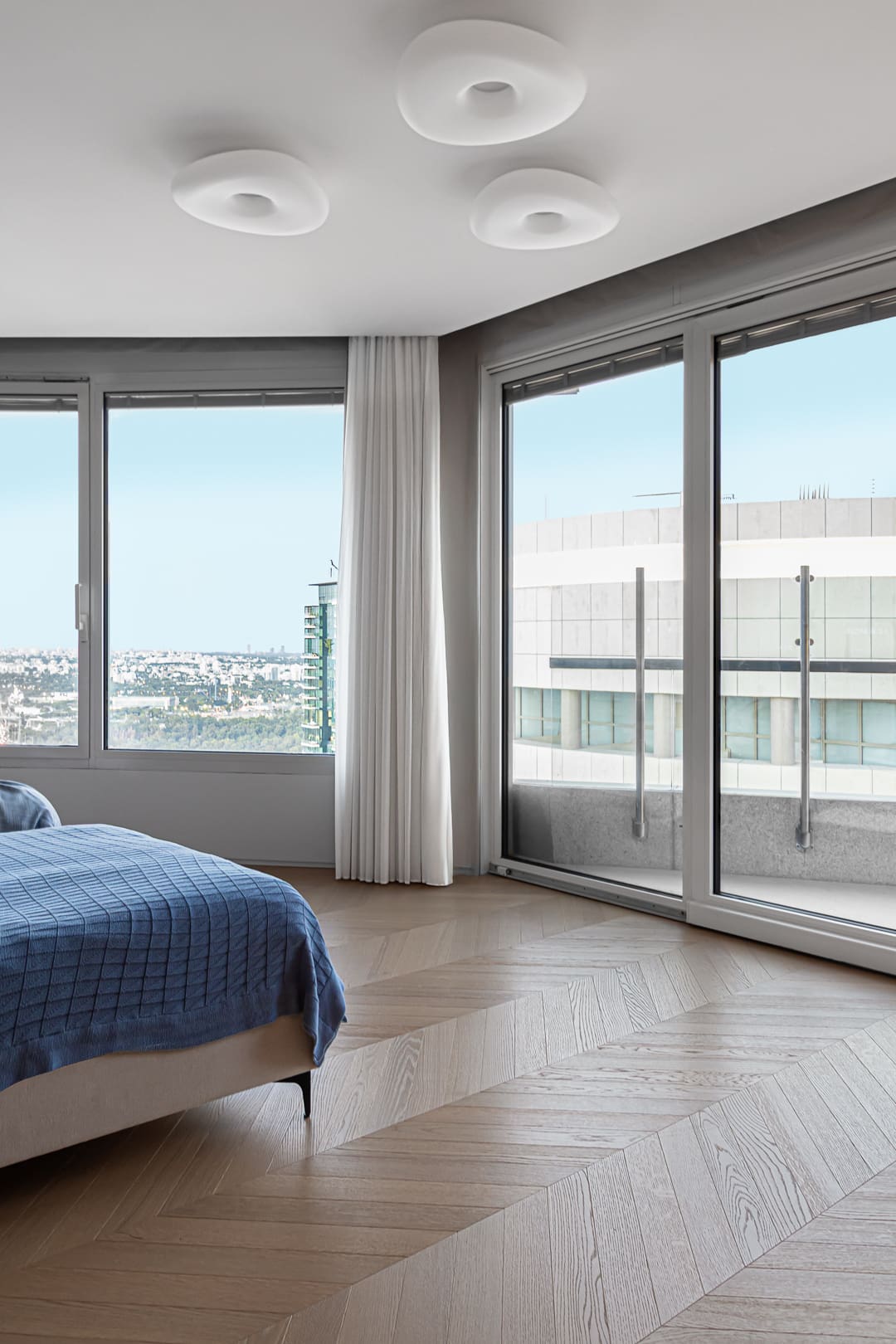 הפרקט הנבחר: סדרת הרמוניקו בהתקנת שברון והתקנת קורות מבית salis איטליה. ניתן להבחין שבאיזורים מסויימים גיוונו עם אגוז פישבון גמר לכה.